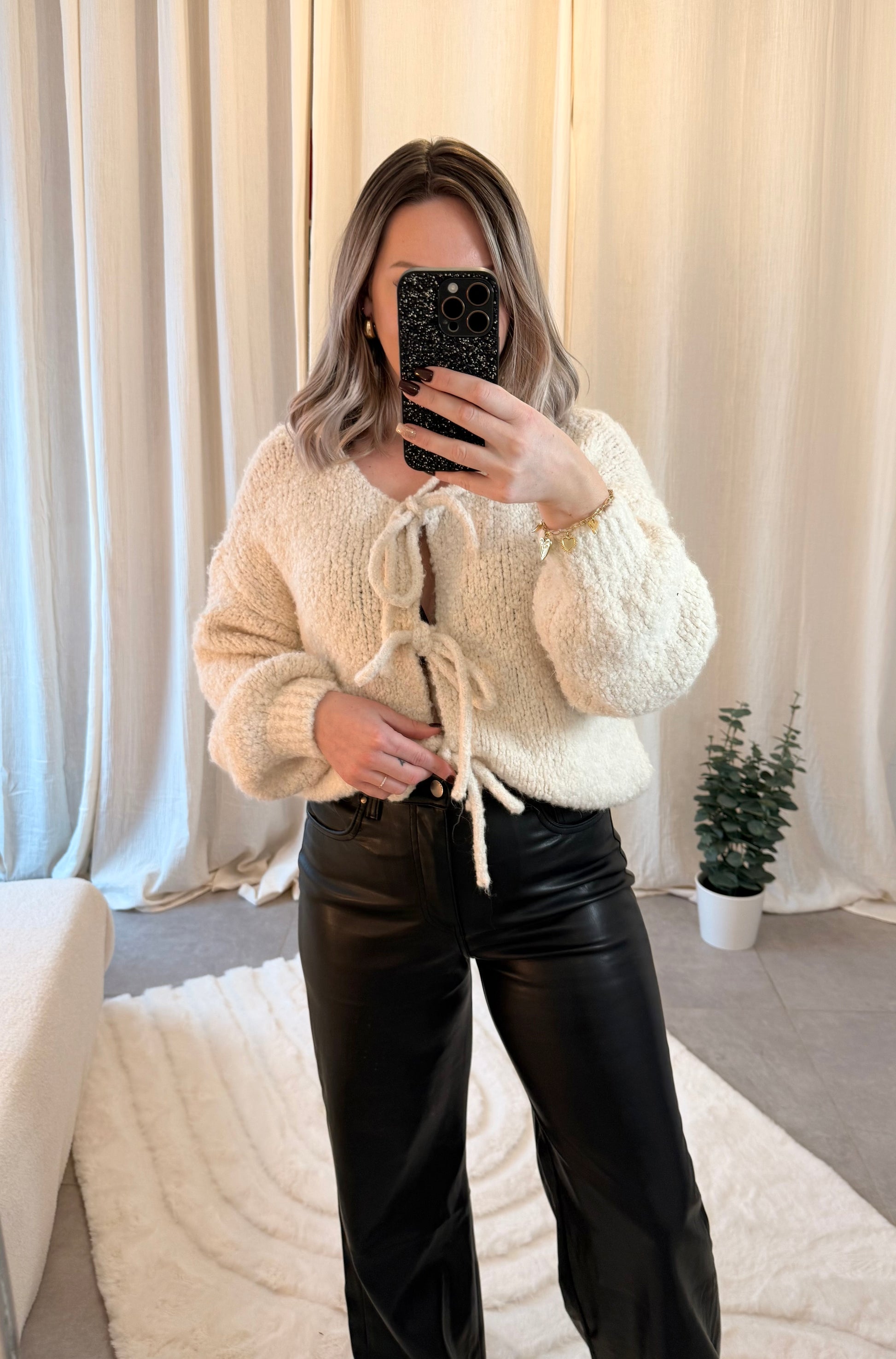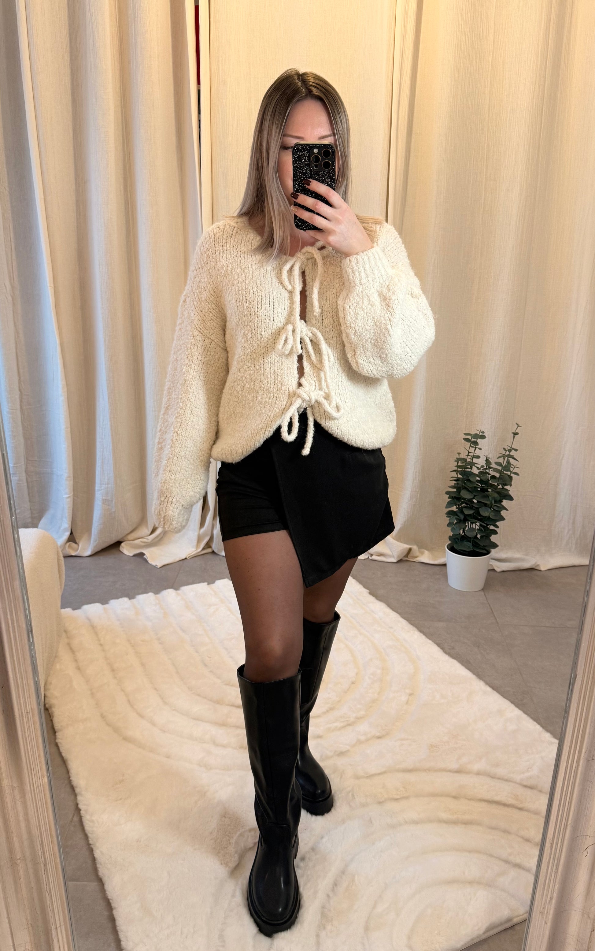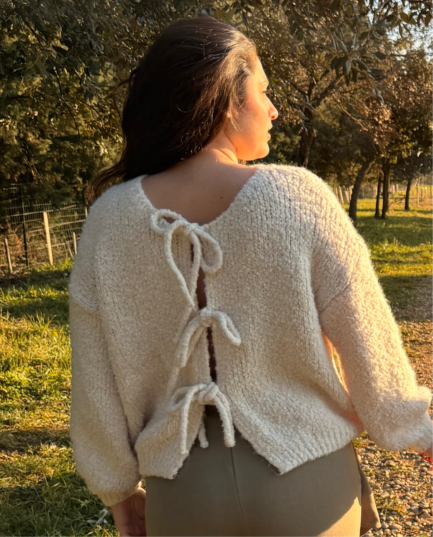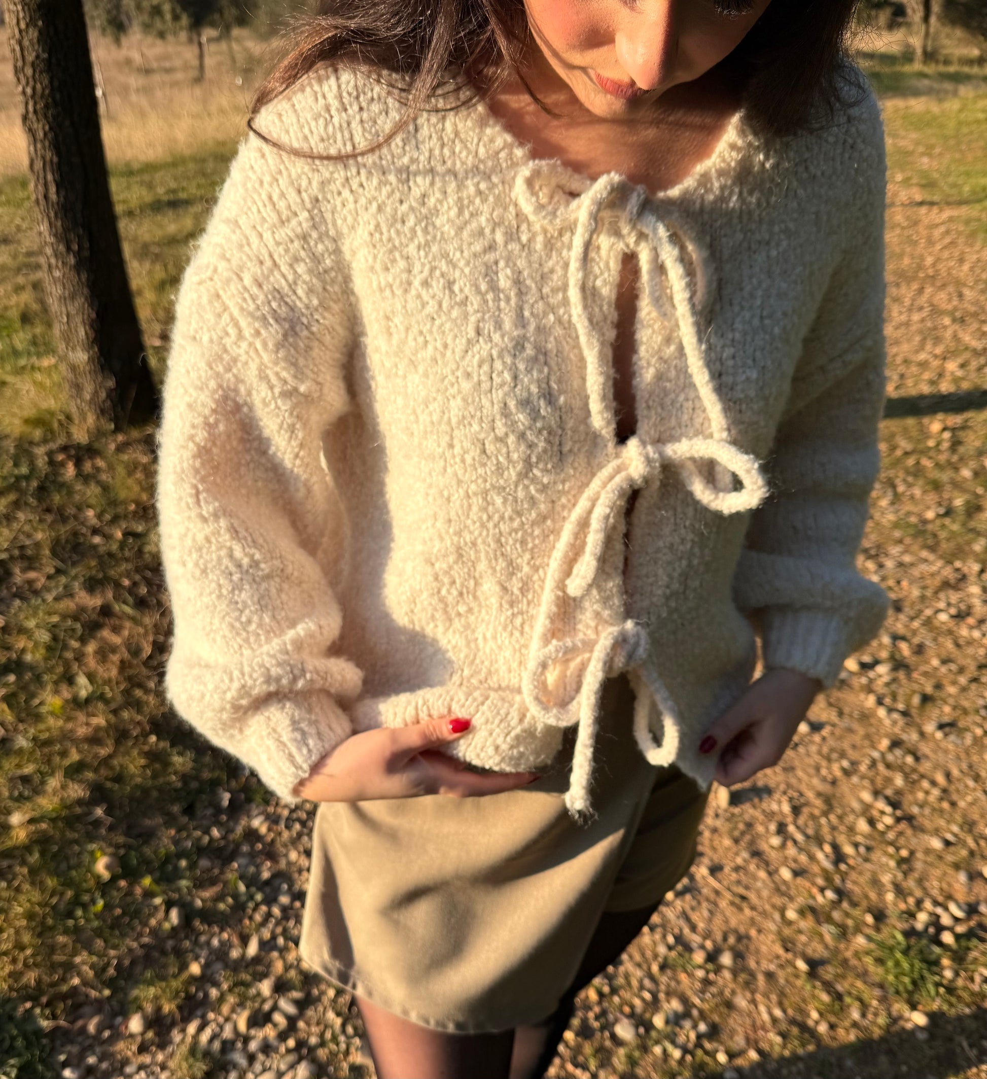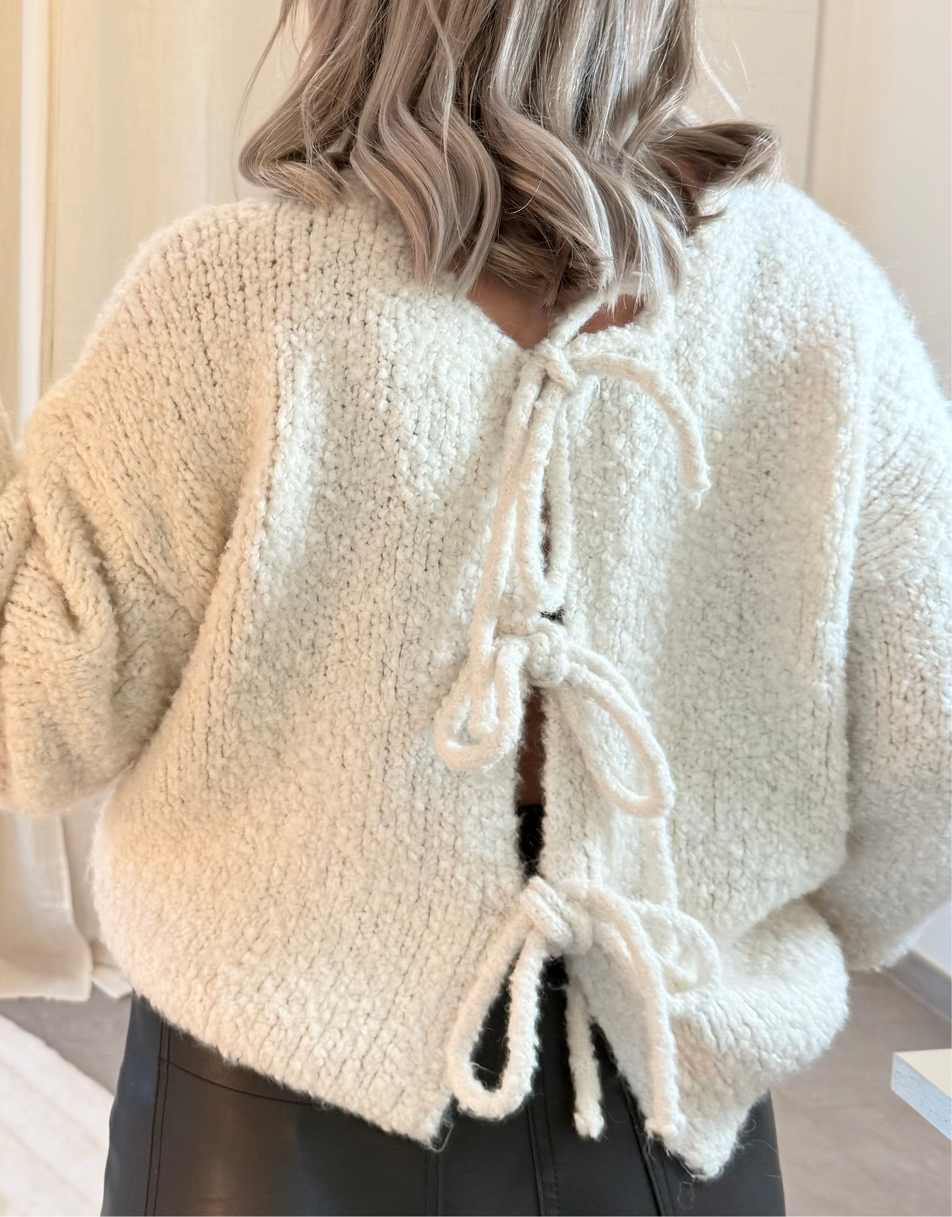 ♡ Description : Gilet avec nœuds en matière bouclée, col rond et manches amples.