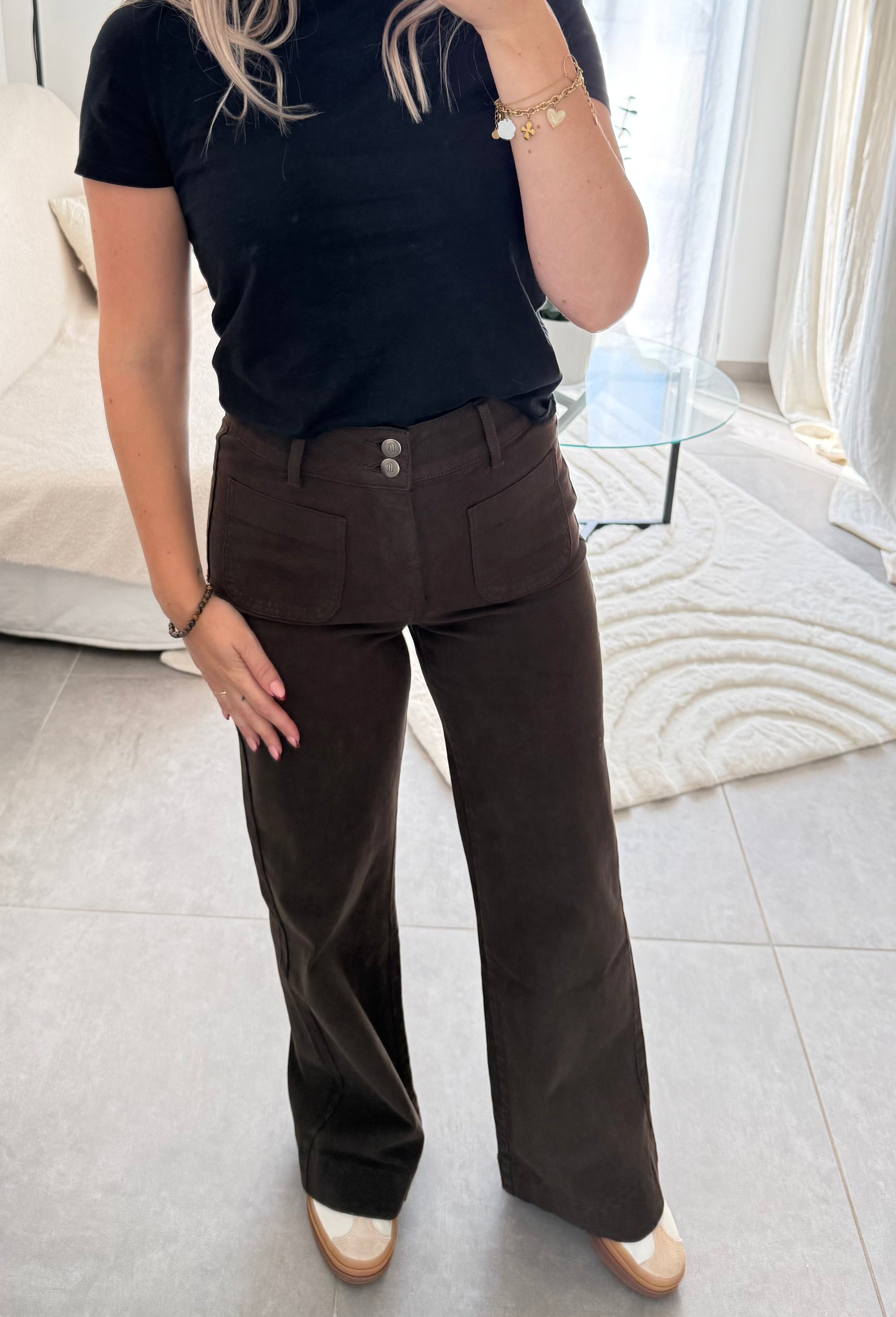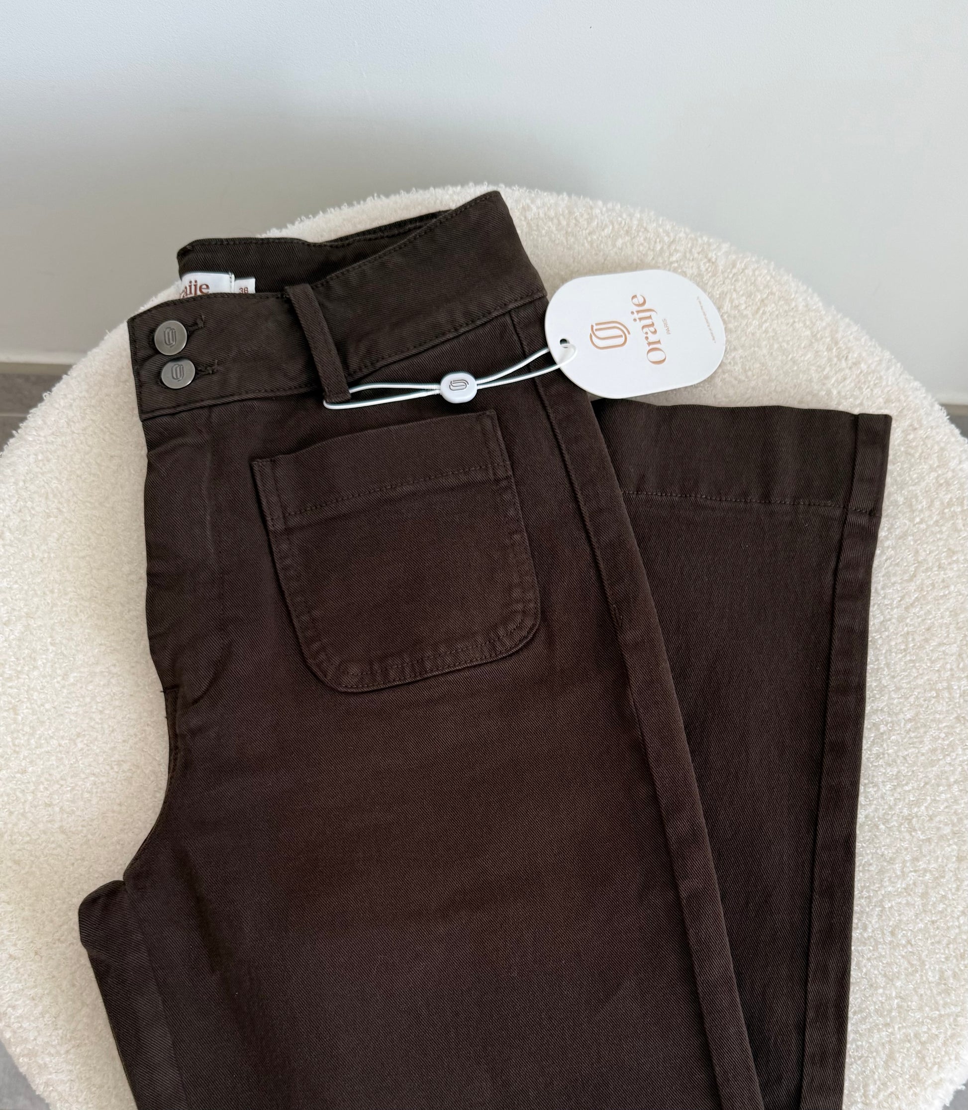 ♡ Description : Jean taille haute stretch, coupe flare, poches à l'avant et à l'arrière. (Marque ORAIJE modèle Elenette)