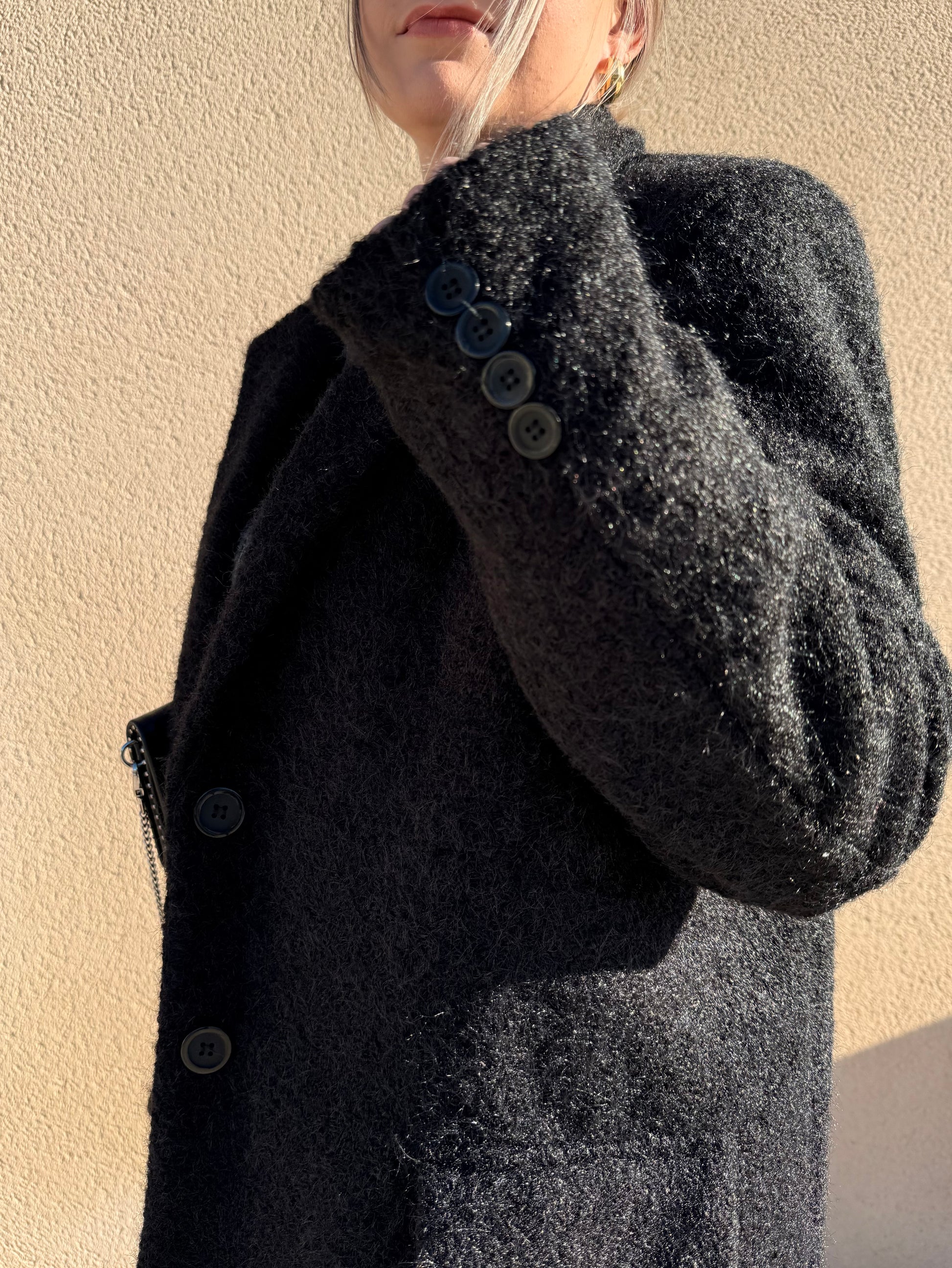 ♡ Description : Blazer oversize chaud, effet laine mélangée, col tailleur, épaulettes et fausses poches.